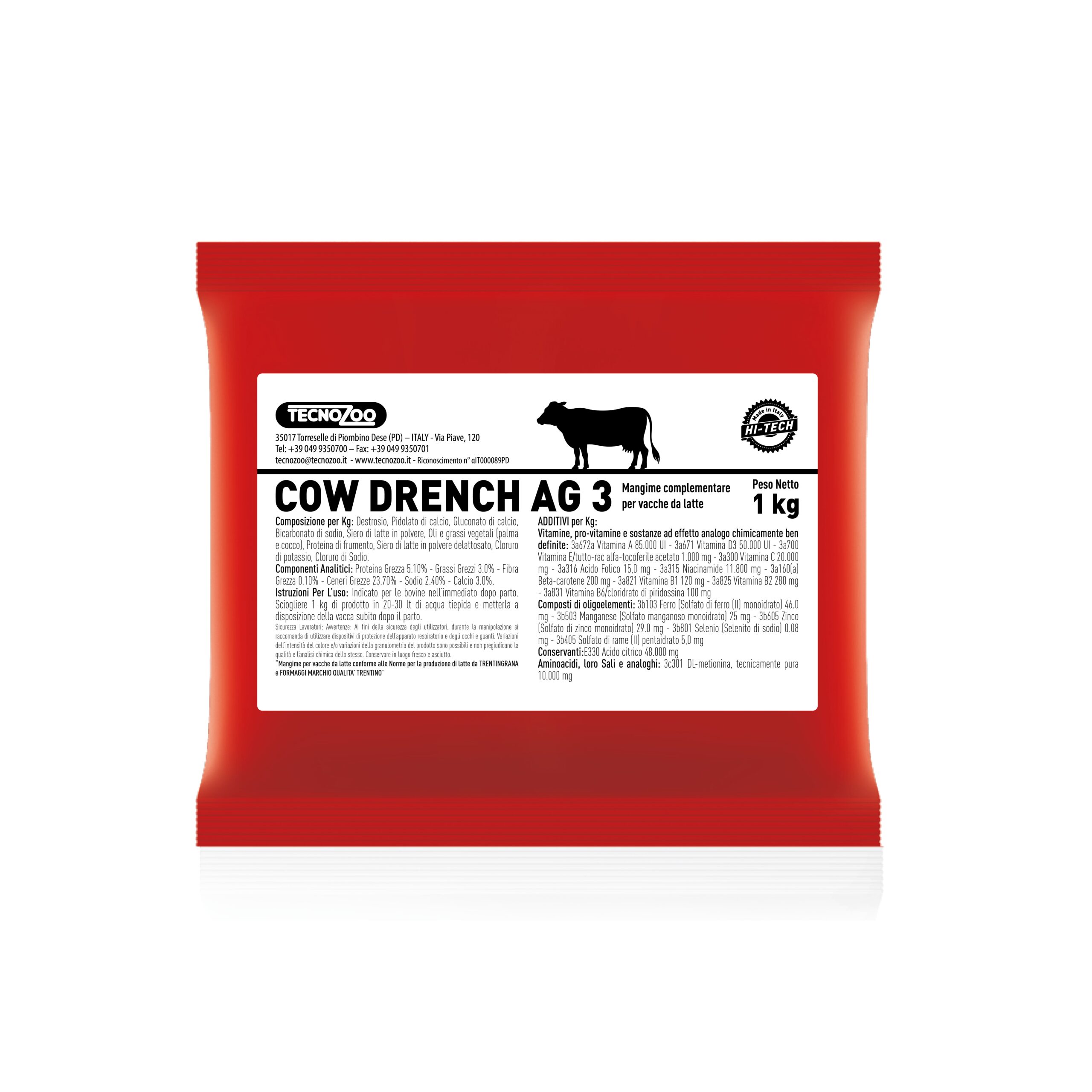 Cow Drench AG3 è un prodotto in polvere indicato per reintegrare energie e sostanze perse dalle bovine nell’immediato dopo parto.